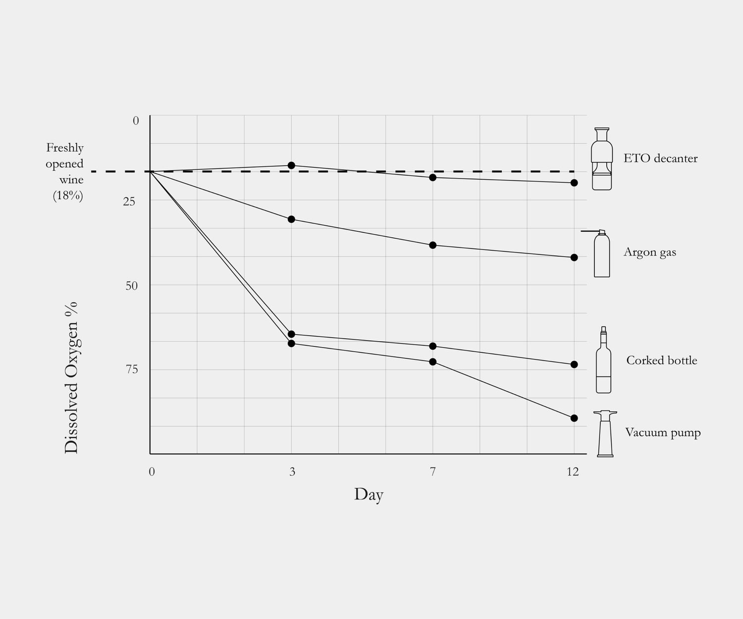 Harrow said, “A wine which had been decanted (into ETO) seven days beforehand tasted every bit as fresh as a wine which had come from a recently opened bottle. But it also had the added benefits of decanting... it tasted absolutely delicious.”